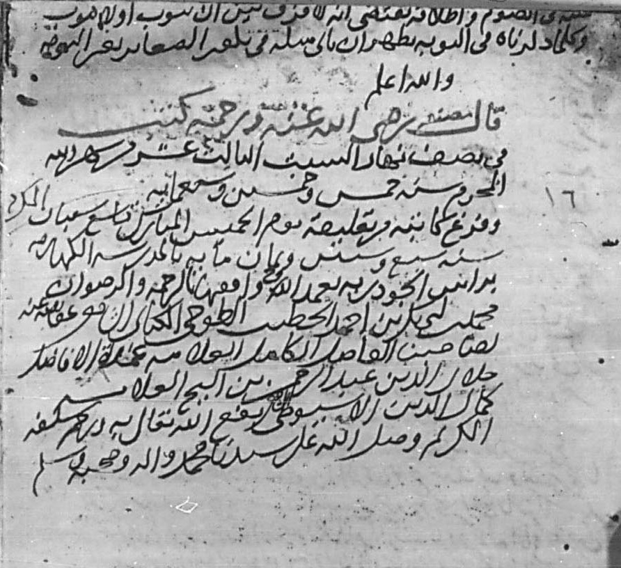 وألطف ما في نسخةِ الطوخي المذكورةِ آنفًا: أنه أرَّخ كتابته لها بيوم الخميس، تاسع شعبان، سنة 867هـ، ثم ذكر أنه كتبها “لصاحبنا الفاضل الكامل العلامة عمدة الأفاضل جلال الدين عبدالرحمن ابن الشيخ العلامة كمال الدين الأسيوطي الشافعي -نفع الله تعالى به ورحم سلفه الكريم-“.