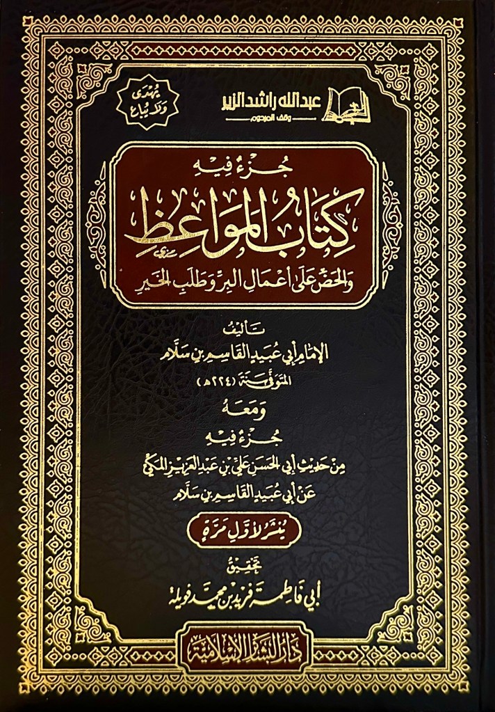 صدر مؤخرًا عن دار البشائر الإسلامية، بتحقيق الشيخ فريد بن محمد فويلة، كتاب “المواعظ” للإمام أبي عبيد القاسم بن سلام الهروي (ت 224هـ)، اعتمد فيه المحقق على نسختين خطيتين، يحوي إحداهما مجموع نفيس في المكتبة الوطنية الإسرائيلية بالقدس، وتُحفَظ الأخرى ضمن مجموعة الرفاعية في مكتبة جامعة لايبزيك بألمانيا [1].