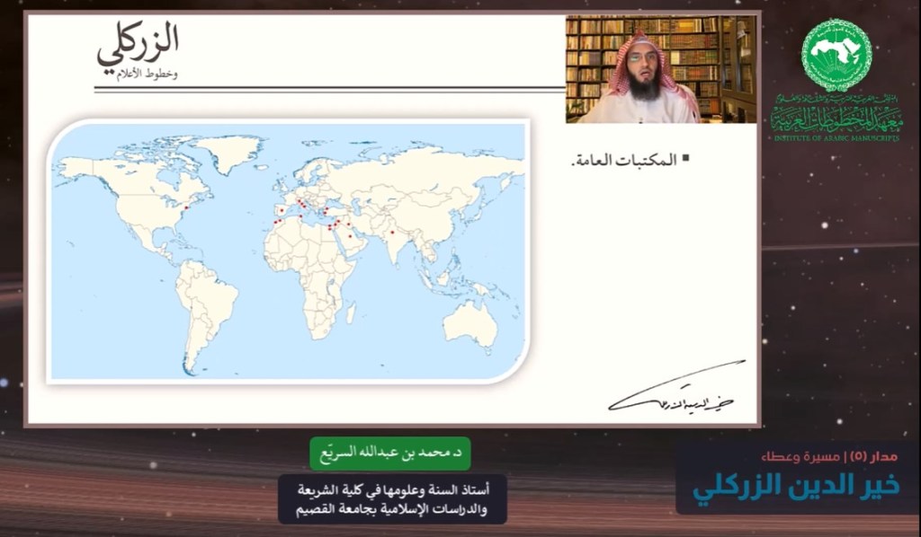 ورقة علمية في محاضرة مصوَّرة، عرضتُ فيها بعد استقراءٍ وتتبُّع، وبالنماذج والصور والإحصاءات، لعناية العلَّامة خير الدين الزركلي بخطوط المترجمين في كتابه “الأعلام”، وفق المحاور الآتية: