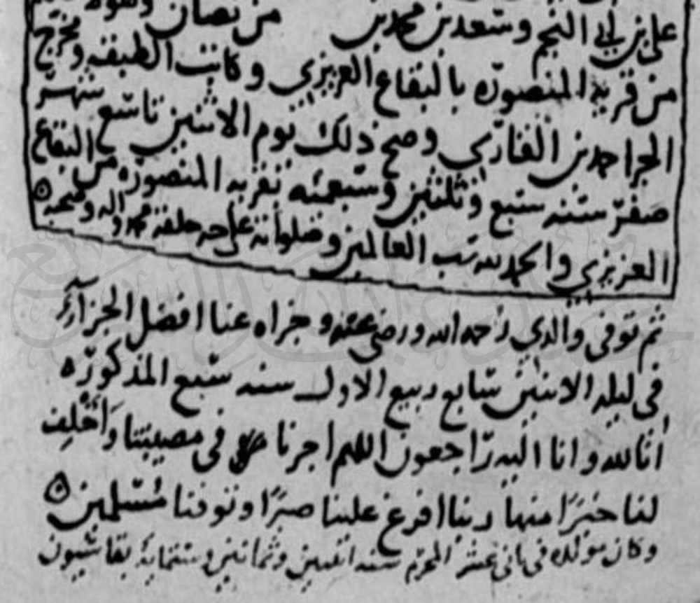 ذلك فضلًا عن أن إشارةَ النسخة إلى الوفاة أثناءها تُعَدُّ تأريخًا أصيلًا من شاهدٍ حاضر، فلا يدخله خطأ النقل ولا سقم النسخ ولا توهُّمات الرواة، بل هو في أعلى مراتب المصدر التاريخي الموثوق للحادثة.