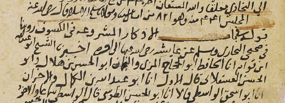 أخبرنا الشيخ أبو عبدالله بن قوام، أنا الحافظ أبو الحجاج المزي، والنجمان: أبو الحسن بن هلال، وأبو الحسن العسقلاني[2]، قال الأول: أنا أبو عبدالله بن الكمال، والآخران: أنا أبو إسحاق الواسطي، قالا: أنا أبو الحسن الطوسي -قال الواسطي: سماعًا، والآخرُ: إجازة-، أنا أبو محمد السيدي، أنا أبو عثمان البحيري، أنا أبو علي السرخسي، أنا أبو إسحاق الهاشمي، أنا أبو مصعب الزهري، أنا مالك[3]. ح