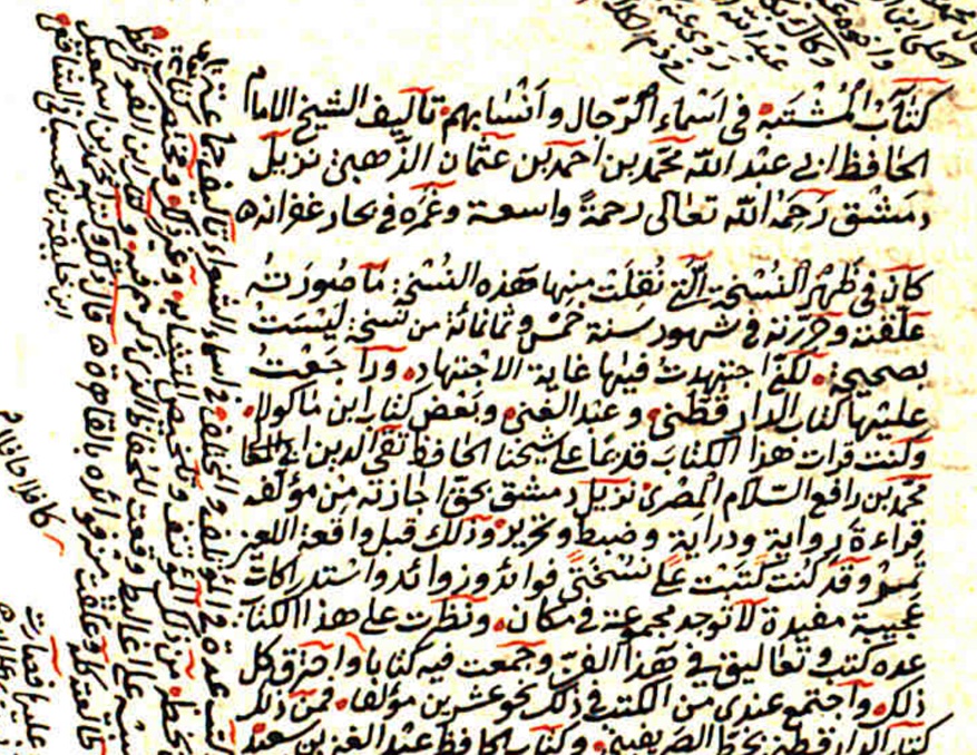 [6] قال ابن الحسباني بعدها: «واجتمع عندي من الكتب في ذلك نحو عشرين مؤلَّفًا…»، ثم سرد جملةً منها، ومراده -كما سيأتي- ما اجتمع له مجدَّدًا، فطالعه بعد احتراق كتبه الأولى، وقد ذكر في هذه الكتب -مثلًا-: «المؤتنف» للخطيب البغدادي، بخطه، وهذا ما زال محفوظًا جلُّه -بحمد الله-.