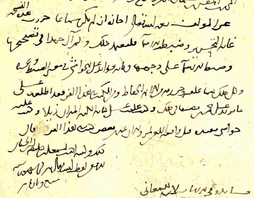 «ولم آلُ جهدًا في أمرها وإتقانها، وكتابة ما تدعو الحاجة إليه من التقييد على الحواشي، والاستدراك عليه…، مع طول العهد بهذا الفن، وقلة الكتب عندي فيه، بعد أن كان عندي فيه وفي غيره ما لم يجتمع عند عالمٍ ولا محدِّثٍ في هذه الأزمان».