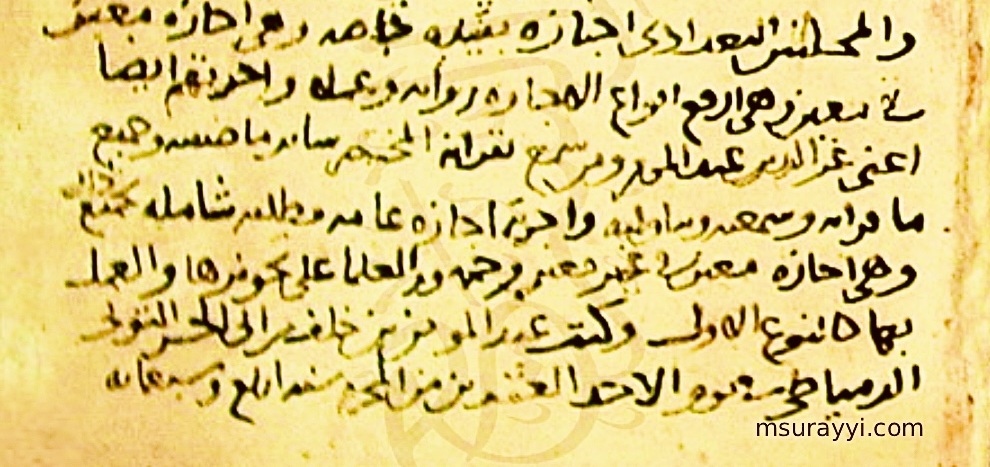 وقد كان الدمياطيُّ وهو يكتب هذه الإجازة شيخًا كبيرًا في الحادية والتسعين من عُمره، وكتابته تُثبِت ثباتَ جنانِه وبنانِه يومئذٍ، وحضورَ عقله، وكمالَ إقباله على العلم وبَذلِه وقراءته حتى آخر حياته، ولا غرو، فإنه لم يزل «يُسمِع الحديثَ إلى أن مات فجأةً بعد أن قُرئ عليه الميعاد، ثم صعد إلى بيته، فغشي في السلم عليه، وتوفاه الله تعالى»[2]، وذلك بعد خطِّه هذا بنحوٍ من سنتين.