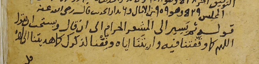 [1] قوله[2]: «ثم يَسِير إلى المشعَرِ الحَرام»، إلى أن قال: «ويستحب أن يقول: اللهم كما وَقَّفْتَنَا فيه، وَأَرَيْتَنَا إياهُ، وَفِّقْنا لذكرك كما هَدَيتَنا»، إلى آخِرِهِ.