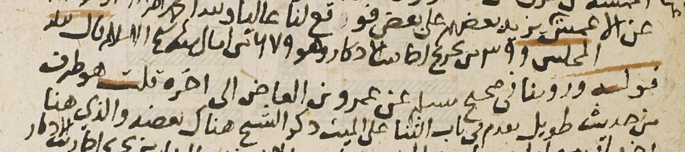 قرأت على عبدالله بن عمر بن علي، عن الأحمَدِين: ابن عبيد الإسعردي، وابن علي المشتولي، وابن أبي[14] أحمد الصَّيرفي -سَماعًا عليهم مجتمعين، وعلى غيرهم-، فقالوا: أنا أبو الفرج بن الصيقل، أنا أبو محمد بن صاعِد، أنا أبو القاسِم بن الحصين، أنا أبو علي الوَاعظ، أنا أبو بكر بن حَمْدان، ثنا أبو عبدالرحمن الشيباني[15]، ثنا يحيى بن معين…، فذكر مثله سَواء.
