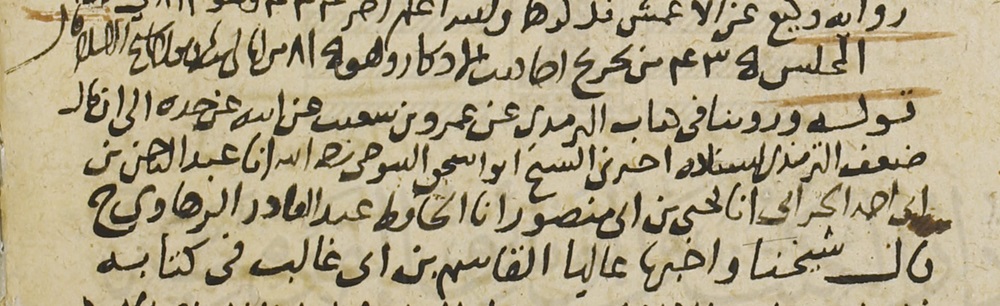أخبرني الشيخ أبو إسحاق التنوخي -رحمه الله-، أنا عبدالرحمن بن أبي أحمد الحراني، أنا يحيى بن أبي منصور، أنا الحافظ عبدالقادر الرهاوي. ح